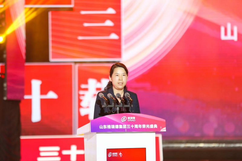 德州市德城区人民政府副区长、党组成员刘桂芝首先对山东格瑞德集团有限公司成立30周年致以祝贺,肯定了集团30年来的发展成绩。他表示,格瑞德作为德城新能源装备产业的龙头企业,业产品覆盖新能源、新材料、节能环保等五大领域,今天格瑞德的5项荣誉揭牌、8个重点项目启动,必将是格瑞德发展历程上浓墨重彩的一笔,也是德城工业高质量发展的又一重要成果。