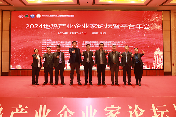 2024 地热产业企业家论坛暨平台年会于 2024 年 12 月 25-27 日在湖南省长沙市召开,本次会议由中国地热与温泉产业技术协同创新平台、湖南省工程地质矿山地质调查监测所、中国地质调查局浅层地温能研究与推广中心、住房和城乡建设部建设环境工程技术中心、自然资源部浅层地热能重点实验室与湖南省矿业协会共同主办。环境科技公司销售事业部经理王涛、湖北分公司副总经理张文桥、安徽分公司总经理俞鹏先、河南分公司副总经理郭群海、环境科技公司系统工程组组长王青环等出席会议。