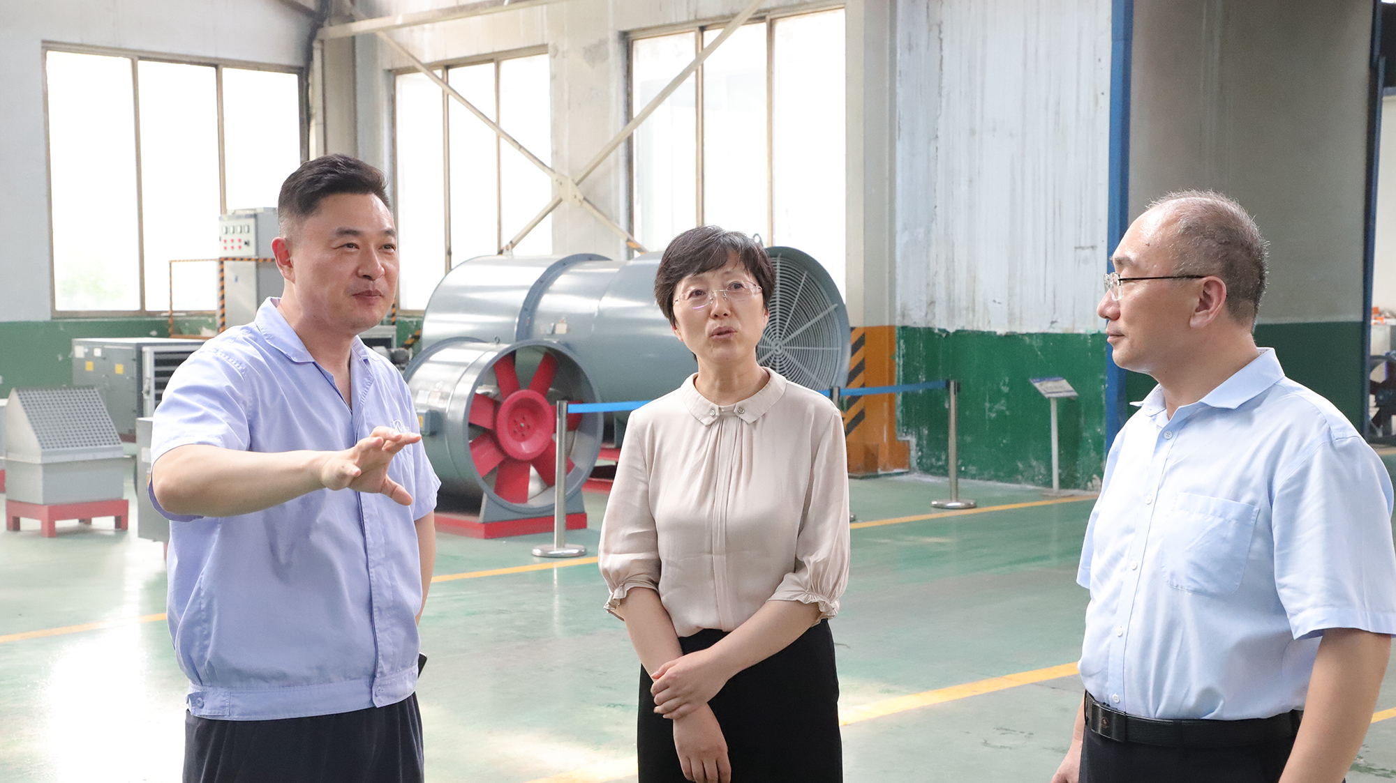 市、区总工会领导在参观通风人防工厂、能源工程公司工厂时,详细询问了解了一线职工在高温下劳动保护方面采取的措施,并嘱咐车间负责人要做好员工们的防暑降温工作。